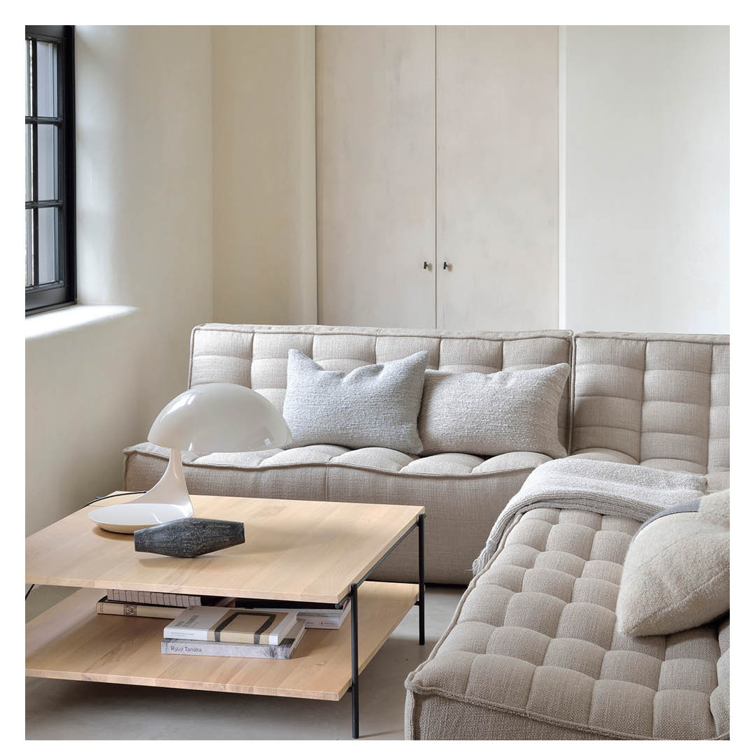 De N701 bank van Ethnicraft is hét voorbeeld van slim en stijlvol wonen. Deze modulaire elementenbank laat je volledig vrij om je ideale zithoek te creëren. Dankzij de vele beschikbare modules van hoekelementen tot hockers en tussen elementen bouw je de bank precies zo groot en speels als jij wilt.